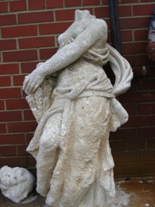 Broken statue outside Cleveland Twist building, Cleveland, OH